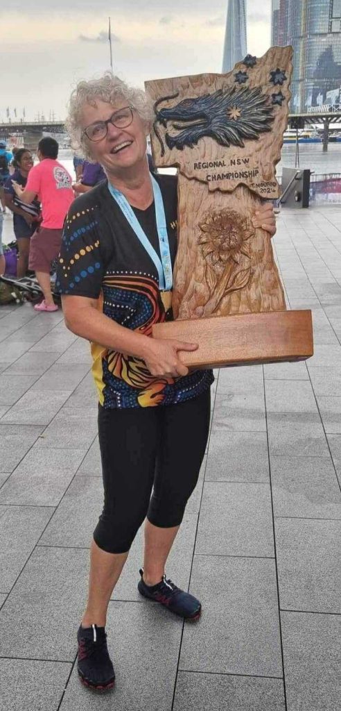 Karen began her dragon boating journey in 2017 and quickly distinguished herself through exceptional technique, determination and a relentless drive to improve. Her commitment and talent saw her represent the club at regional and state levels, as well as on the national stage. In 2025, Karen achieved a significant milestone when she was selected to represent Australia overseas as a member of the Auroras — a testament to her skill, discipline and passion for the sport.